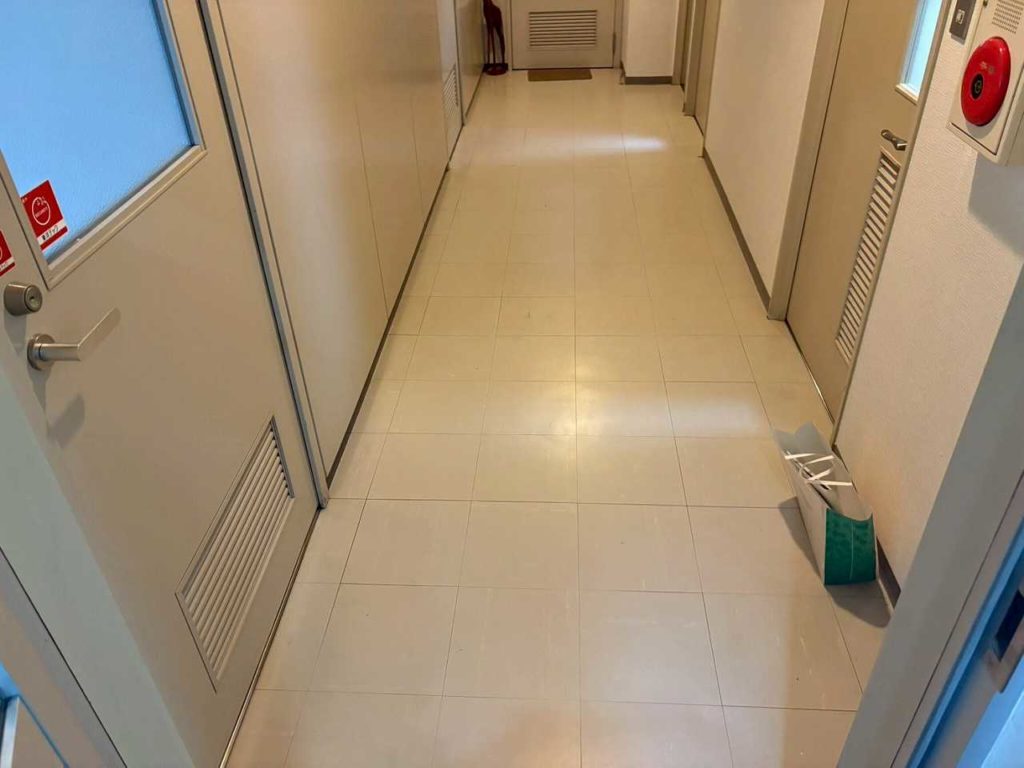廊下にフロアタイルを施工するだけで、テナントの印象は大きく改善します。
