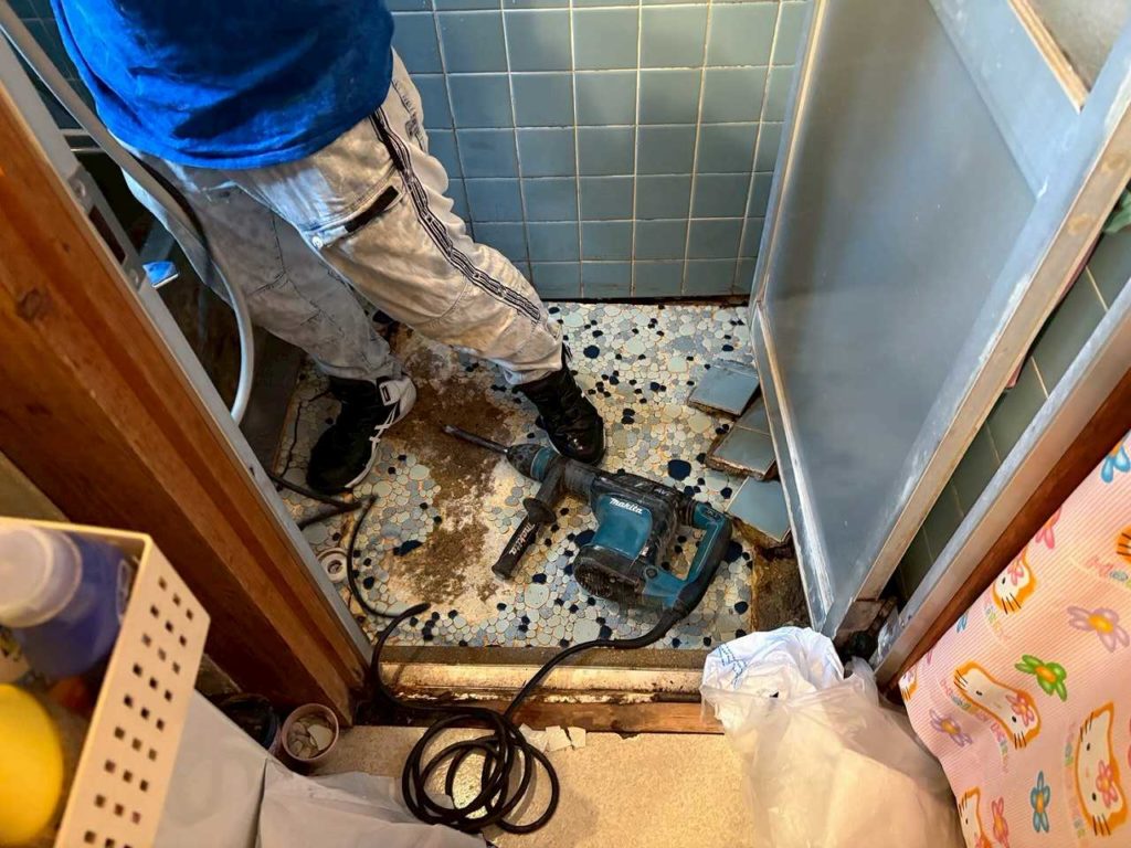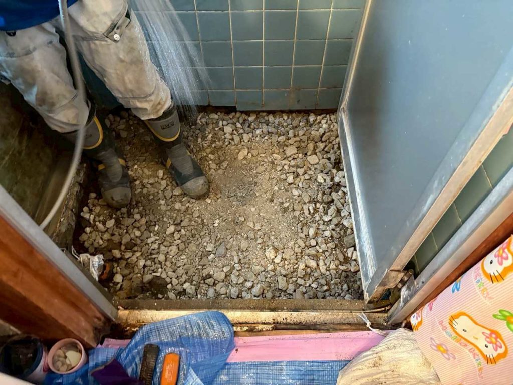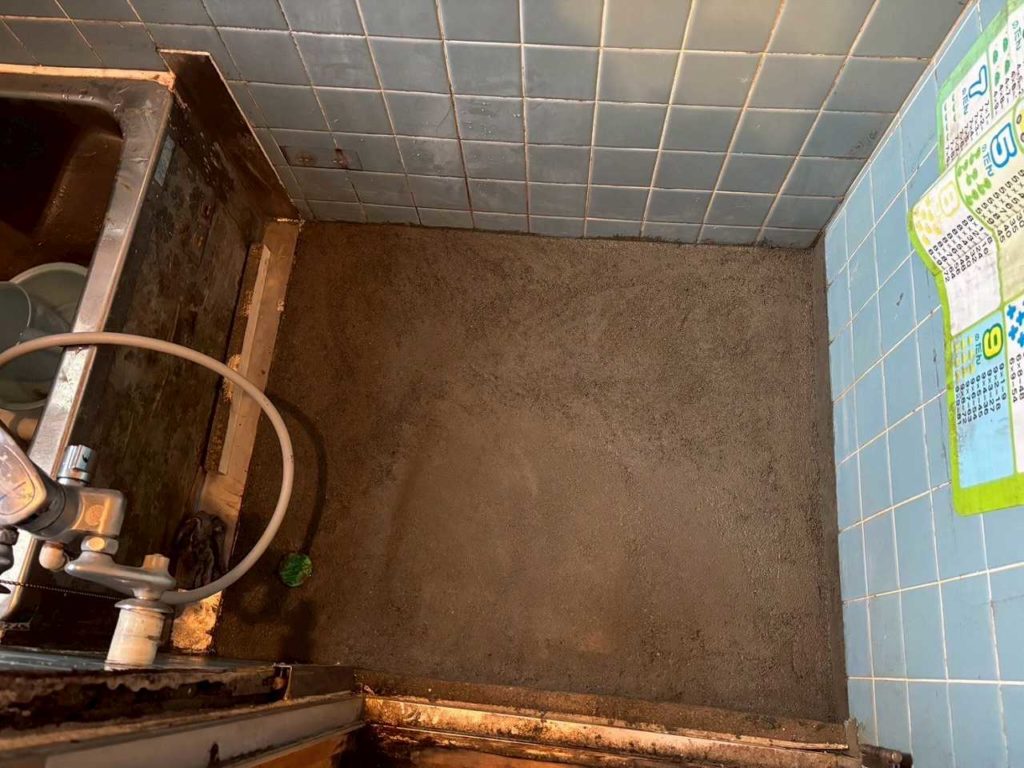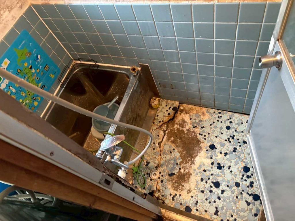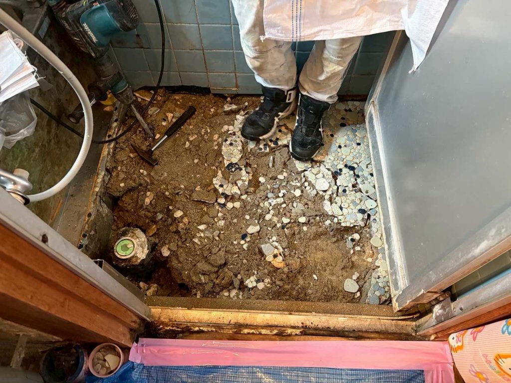 大阪府堺市北区の戸建てにて、在来浴室の床が陥没するトラブルが発生し、修繕のご依頼をいただきました。